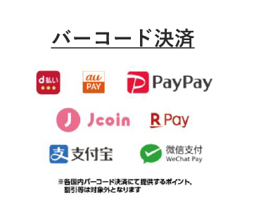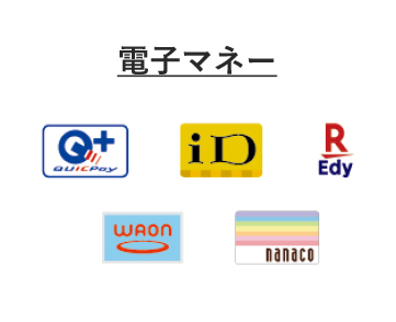 下記の電子マネー、クレジットカード、バーコード決済がご利用できます。