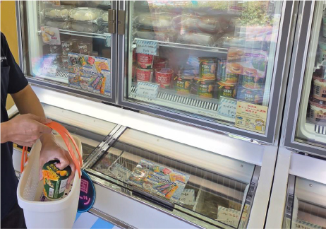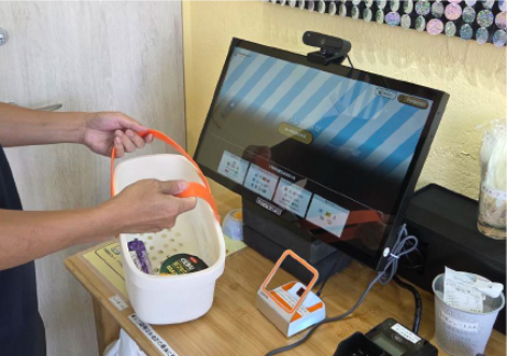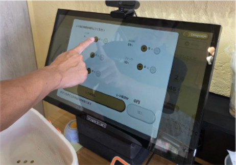 レジにて商品をスキャン